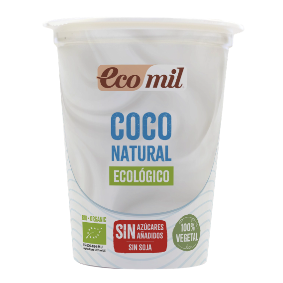 Postre de coco fermentado con cultivos veganos.