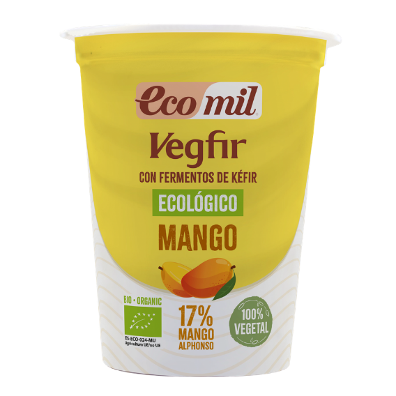 Especialidad vegetal de coco con mango y fermentos veganos de kéfir.