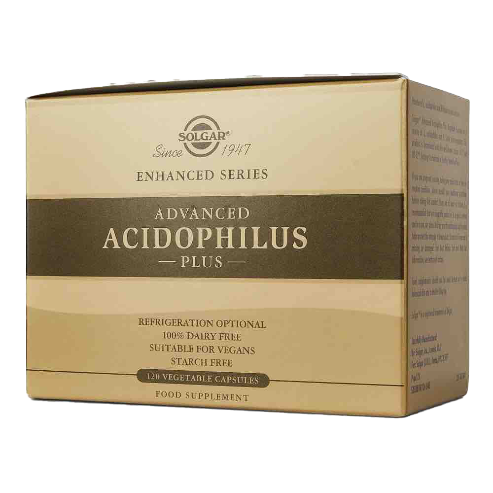 El probiótico 40+ Acidophilus Avanzado aporta, por cápsula, 300 millones de microorganismos de cada una de las cinco cepas bacterianas registradas, especialmente cultivadas: Lactobacillus acidophilus (LA-5®), Lacticaseibacillus rhamnosus GG (LGG®), Lacticaseibacillus paracasei (L. CASEI 431®), Bifidobacterium lactis (BB-12®) y Streptococcus termophilus (TH-4®). Todos los probióticos avanzados de Solgar utilizan una tecnología de liofilización que permite mantener la viabilidad bacteriana sin necesidad de refrigeración. Además, 40+ Acidophilus Avanzado se presenta en un envase innovador diseñado con tecnología patentada, que incluye un film desecante en el interior de sus paredes, lo que permite controlar mas eficientemente los niveles de humedad del producto sin necesidad de almohadilla desecante en su interior, lo que mejora su estabilidad y vida útil.