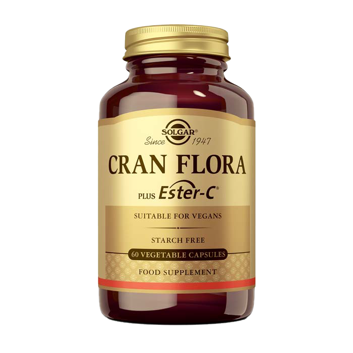El arándano rojo es el fruto de un grupo de arbustos del género Vaccinium, y se caracteriza por ser un fruto que, una vez maduro, tiene un intenso color rojo gracias a su contenido en polifenoles, que realizan funciones de protección para la planta. Entre ellos, destacan las proantocianidinas (PACs). Dos cápsulas de Cran Flora de Solgar contienen 800 mg de un extracto altamente concentrado de arándano rojo que equivale a 40 g de arándano rojo fresco, Además, contiene la cepa probiótica Lactobacillus acidophilus La-14®, una cepa probiótica beneficiosa que se encuentra de forma natural en el tracto digestivo, y 200 mg de vitamina C en forma de Ester C, una forma patentada mejorada de vitamina C no ácida más suave en el estómago y que permanece en el interior de las células hasta 24 horas. Una combinación única de arándano, probiótico y vitamina C que apoya nuestras defensas.