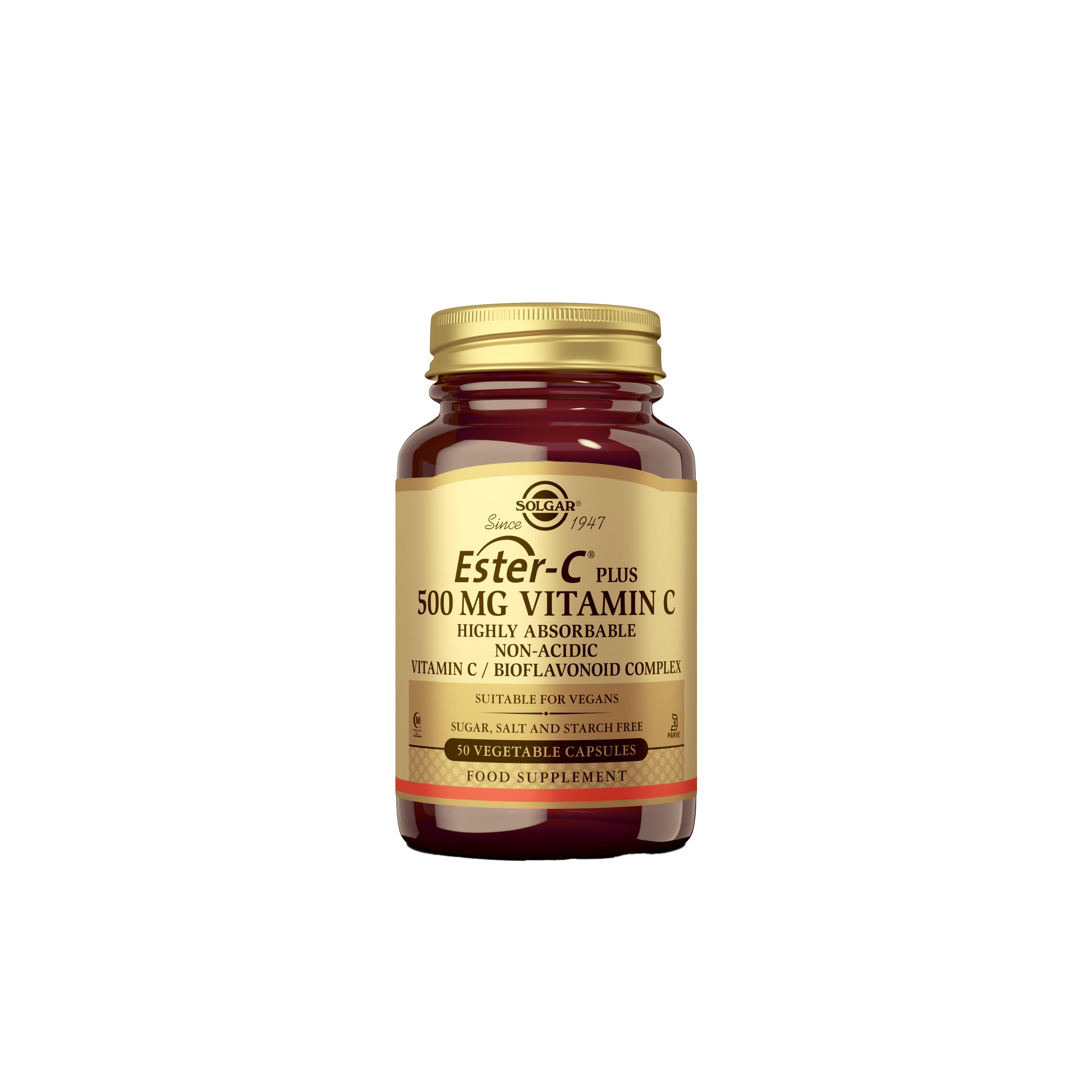 Ester-C® Plus está formulado de forma exclusiva por Solgar® y proporciona una vitamina C ampliamente investigada con un pH neutro (no ácida). Además, Ester-C® Plus contiene los metabolitos que se encuentran de forma natural con la vitamina C en la naturaleza. Se utiliza un proceso de elaboración especial para formar un complejo único de metabolito ascorbato cálcico. Por su caracter no ácido, es mejor tolerada que otras presentaciones de vitamina C. La vitamina C Ester-C® Plus ha demostrado que se concentra en mayor cantidad en las células frente a una vitamina C estándar a las 24 horas*. Ester-C® Plus 500 mg de Solgar® ofrece además acerola, complejo de bioflavonoides cítricos, rutina y escaramujo, que apoyan sinérgicamente a la vitamina C