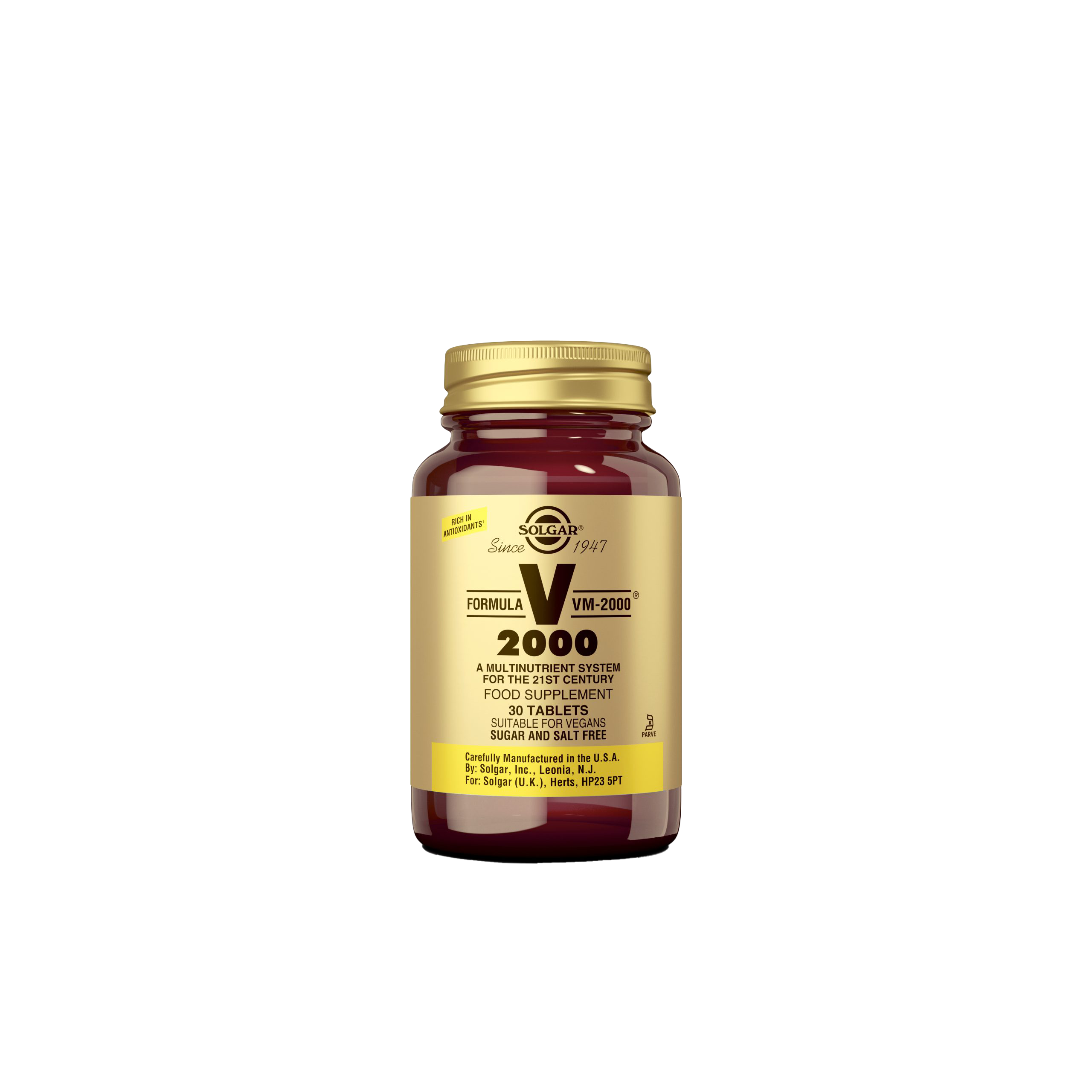 El ritmo de vida actual, el estrés cotidiano, el trabajo, el gimnasio… requiere de una alimentación equilibrada que proporcione nutrientes que ayuden al mantenimiento del metabolismo energético. El VM-2000® de Solgar® es una fórmula multinutriente de alta potencia, que incluye minerales quelados que facilitan su absorción. Un complejo multivitamínico de gran éxito de ventas, con vitaminas, minerales y aminoácidos, especialmente formulado para ayudar a la producción de energía y a reducir el cansancio y la fatiga. Con bisglicinato de hierro, una forma única de hierro formulada para conseguir una máxima absorción mientras minimiza la posible irritación gastrointestinal y el estreñimiento. Con alto contenido en vitaminas del complejo B para mantener el nivel de energía, vitamina C para ayudar la función inmune durante y después de la actividad física, y con nutrientes como zinc, cobre o vitamina E que protegen las células del daño oxidativo. Además, su fórmula incluye proteína de soja en polvo, ornitina, taurina y glutation.