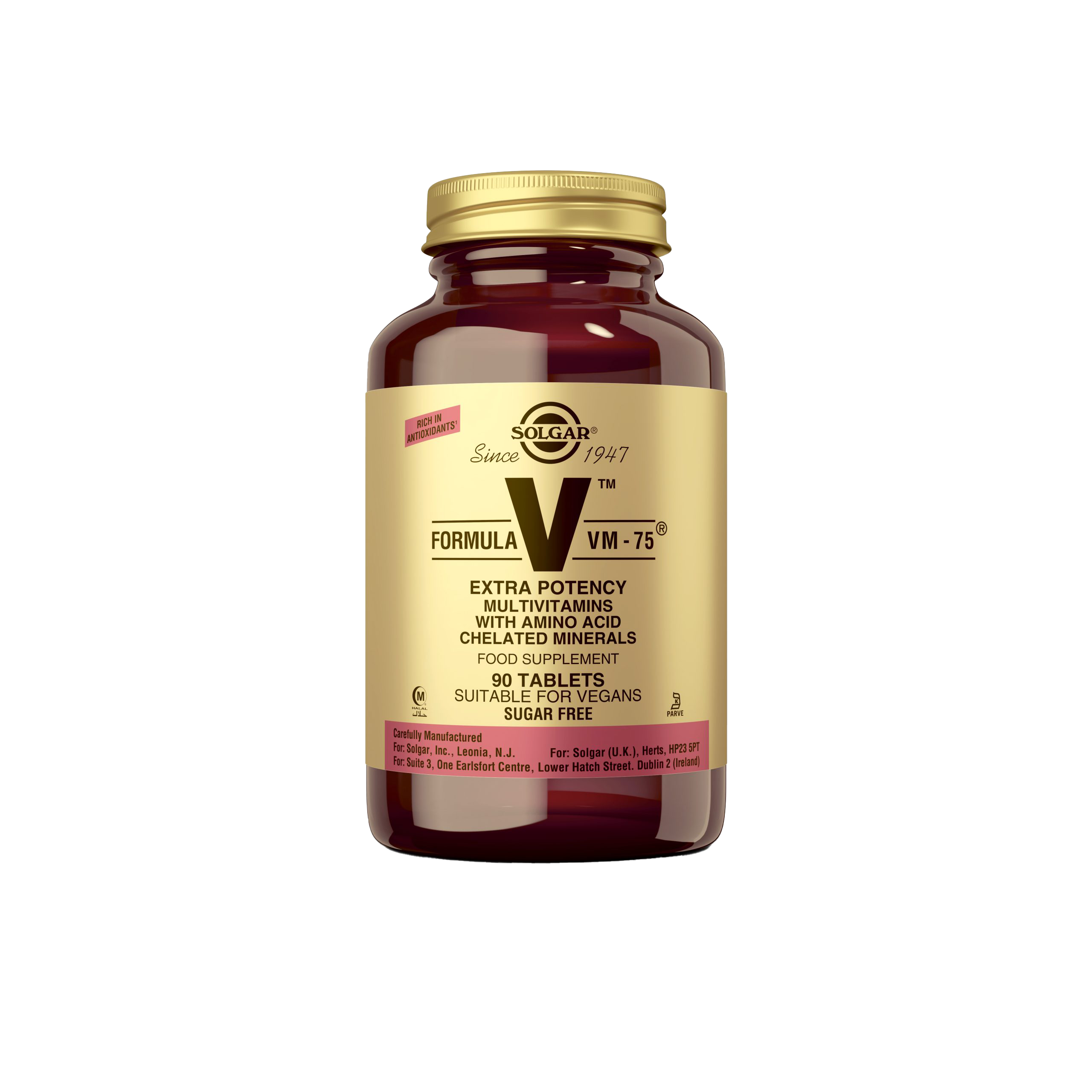La Fórmula VM-75® de Solgar® es un multinutriente con vitaminas y minerales. De su composición destaca su alto contenido de vitaminas del complejo B, que ayudan a la producción de energía y a disminuir el cansancio y la fatiga. Además, provitamina A en forma de betacaroteno, vitamina D, vitamina C y vitamina E, que protegen frente al daño oxidativo y apoyan el correcto funcionamiento del sistema inmunitario. Fórmula VM-75® de Solgar® también contiene minerales necesarios para el organismo, como hierro, magnesio, selenio o zinc entre otros. Con minerales aminoquelados de mejor absorción y biodisponibilidad que otras formas minerales. Un producto completo y adecuado para aquellos que desean apoyar el bienestar general y buscan un plus de energía, con la comodidad de una sola toma diaria.