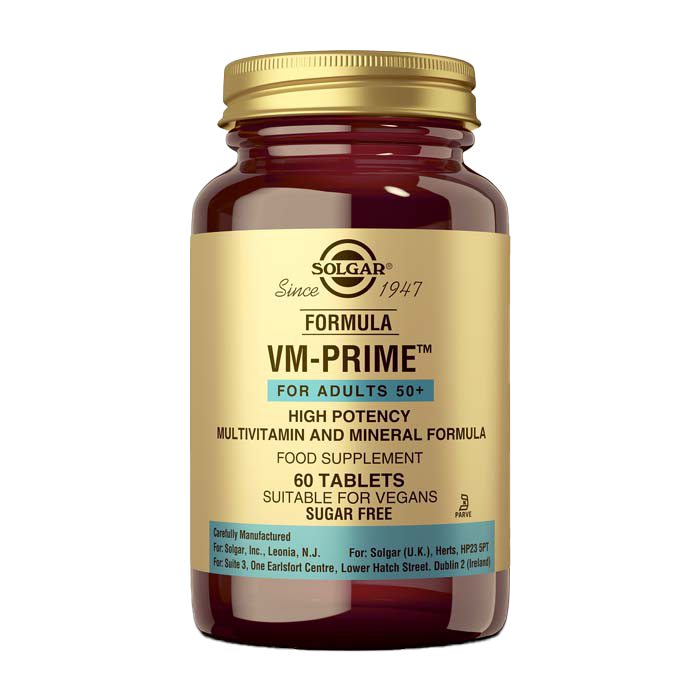 Las diferentes etapas de la vida tienen requerimientos nutricionales concretos. Tanto en el hombre como en la mujer los requerimientos de determinados nutrientes van variando con el paso de los años. Fórmula VM-Prime® de Solgar® es un producto diseñado para adultos de más de 50 años que se ha formulado teniendo en cuenta los requerimientos nutricionales de este rango de población. Con las principales vitaminas y los minerales necesarios para apoyar el bienestar en esta etapa de la vida y ayudar a nuestro organismo a sentirse bien y seguir con su día a día. Un producto que nos ayudará a mantener nuestra energía, nuestra función cognitiva y psicológica, contribuirá a un sistema inmunitario en forma y protegerá nuestras células de los radicales libres.