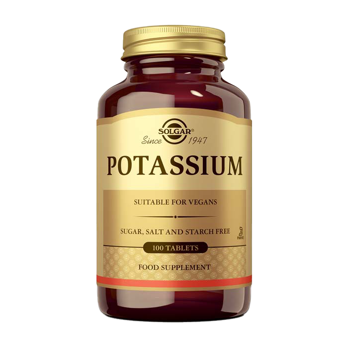 El Potasio de Solgar® es un producto mineral de alta calidad que proporciona potasio en forma de gluconato, forma orgánica que presenta mejor biodisponibilidad que otras formas inorgánicas. El potasio es un electrolito fundamental para distintos procesos del organismo. El potasio contribuye al funcionamiento normal del sistema nervioso y al funcionamiento de los músculos. Otra propiedad del potasio es que interviene en el equilibrio osmótico, ayudando a mantener la tensión arterial normal. Son buenas fuentes de potasio las patatas, los plátanos, el atún y el yogur. Tomar estos alimentos contribuye a reducir el efecto negativo de la sal y ayudará al funcionamiento normal del sistema nervioso y muscular.