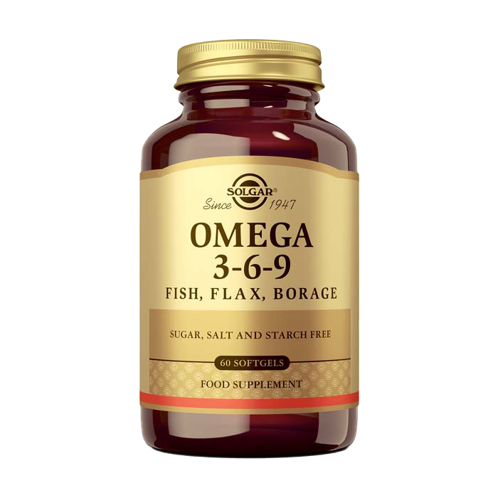 Omega 3-6-9 de Solgar® es una combinación excelente de ácidos grasos omega 3, omega 6 y omega 9. Estos ácidos grasos  se obtienen de tres aceites de primera calidad: pescado, lino y borraja. Omega 3-6-9 de Solgar® utiliza aceites molecularmente destilados para eliminar el mercurio, los PCB y otros contaminantes.