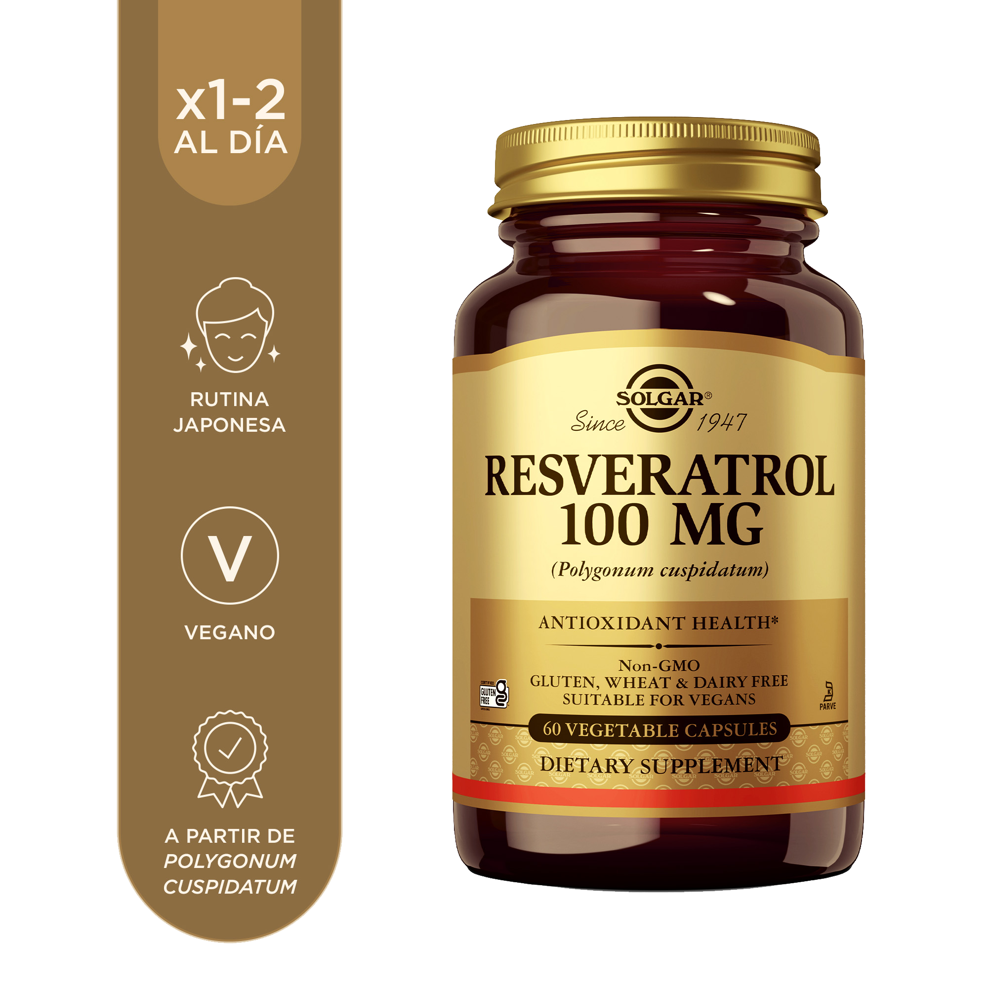Resveratrol 60 cápsulas de Solgar® contiene 100 mg de resveratrol por cápsula obtenido a partir de la raíz de Polygonum cuspidatum. El resveratrol es un polifenol que se encuentra presente de forma natural en uvas, cacahuetes y vino tinto. La raíz de Polygonum cuspidatum es una de las plantas con mayor concentración de resveratrol y sigue siendo ampliamente utilizada en la medicina tradicional china y japonesa. Este polifenol, presente en el vino tinto, suele relacionarse con la “paradoja francesa”, que es incapaz de explicar por qué los franceses, con una ingesta promedio de grasas saturadas similar a otros países, presentan una menor incidencia de eventos cardio y cerebrovasculares.