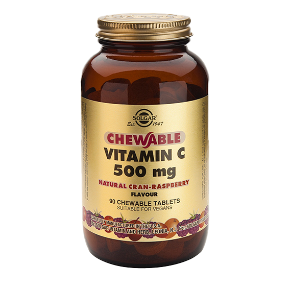 La vitamina C es una vitamina hidrosoluble con múltiples funciones en el organismo: apoya el funcionamiento del sistema inmunitario, mejora la absorción del hierro, interviene en el proceso de formación de colágeno, protege las células del daño oxidativo… Los seres humanos no somos capaces de fabricar vitamina C, por lo que dependemos de la cantidad diaria que ingerimos a través de la dieta. La vitamina C está presente principalmente en frutas y verduras. Vitamina C masticable 500 mg sabor arándano y frambuesa de Solgar® es una presentación de vitamina C menos ácidas que otras presentaciones, ya que, además de ácido ascórbico, incluye en su formulación ascorbatos de sodio y calcio. Sus comprimidos masticables de agradable sabor a arándano y frambuesa lo convierten en un producto ideal para aquellas personas que tienen dificultad para tragar cápsulas o comprimidos.